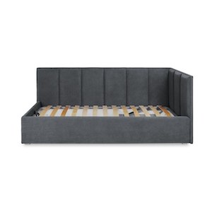 Кровать с ящиком для хранения в изголовье. В этой модели достаточно места для хранения одеял, подушек и постельного белья. Также на такое изголовье можно поставить декоративные элементы или книги.